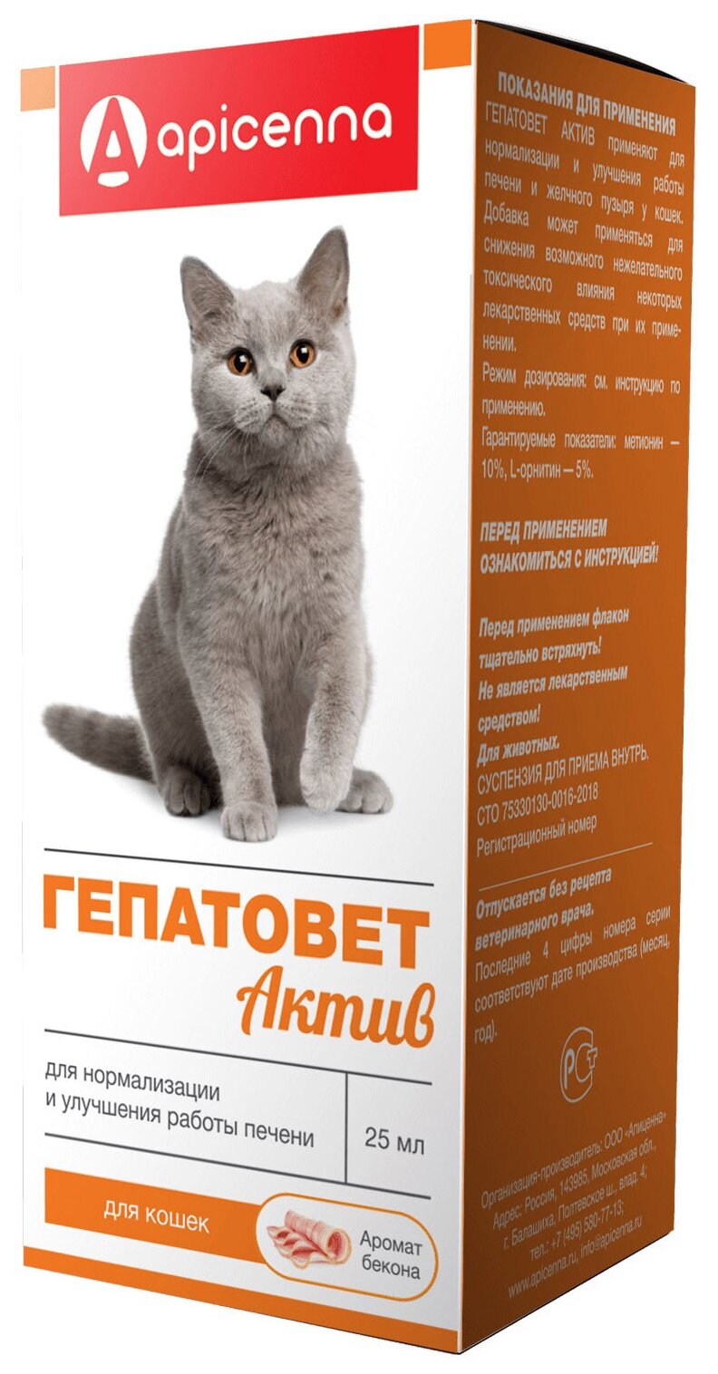 Суспензия для кошек Apicenna ГЕПАТОВЕТ АКТИВ для лечения печени 25мл