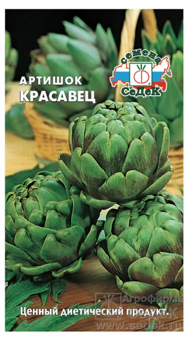 Многолетнее теплолюбивое растение семейства Астровые, в условиях умеренного климата выращивают как однолетнюю рассадную культуру. Среднеспелый (130-140 дней) сорт. Растение слабоветвистое, высотой до 1,5 м, формирует до 10-12 соцветий. Листья крупные, перисто-рассечённые, серо-зелёные, с колючками. Соцветие - шаровидная корзинка диаметром 8-12 см, массой 80-120 г. Урожайность соцветии 1,5 кг/м. кв. Артишок - ценный диетический продукт, богатый аскорбиновой кислотой, каротином, витаминами группы В. Обладает целебными свойствами. В пищу употребляются мясистые цветоложа (донышки соцветий) и широкие сочные основания чешуй в свежем, тушёном, обжаренном, отварном или консервированном виде.
