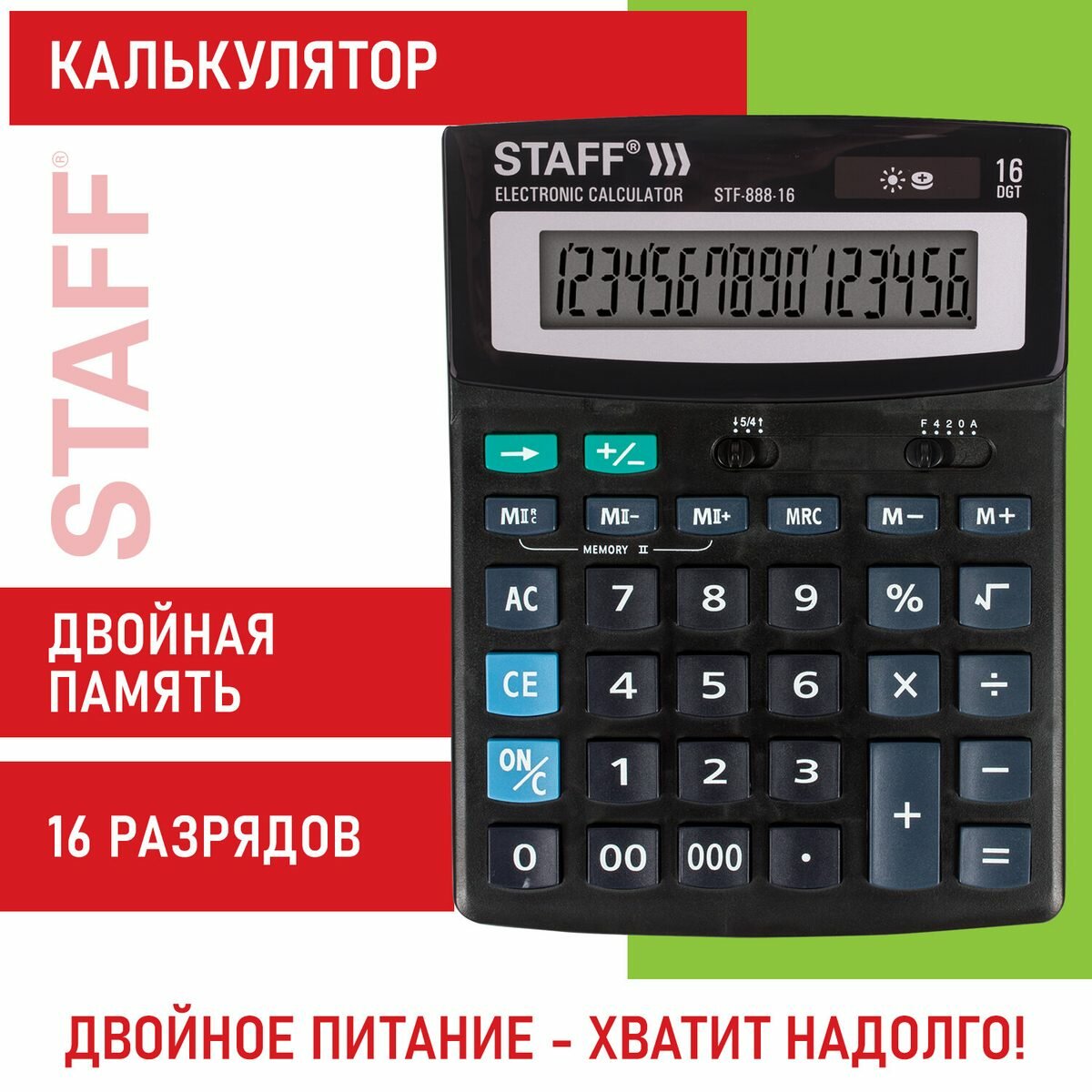 Калькулятор STAFF 16-разрядный черный STF-888-16 (размер: 200x150x10 мм)