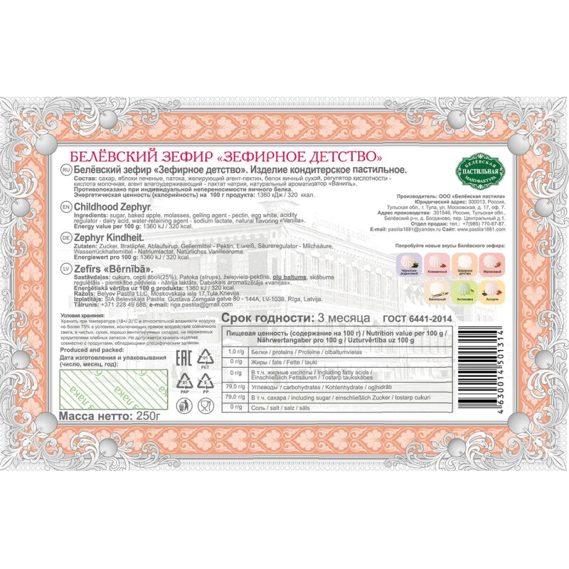 Зефир Белевский Зефирное детство 250г Белевская пастила