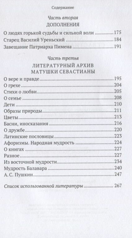 Книга "О жизни схиигумении Севастианы" теснейшим образом связана с теми великими потрясениями, которые Русская Православная Церковь пережила в XX веке. Это были небывалые гонения, обрушившиеся на весь православный российский народ. Обитель преподобного Севастиана Карагандинского, которую матушка Севастиана возглавляла семнадцать лет, была для многих тем светлым островом, где уставшие от мирской суеты люди, порой потерявшие даже смысл жизни, впавшие в отчаяние, понимали, что нужно для их души и в каком направлении необходимо идти в этом мире, чтобы спасти себя и близких.