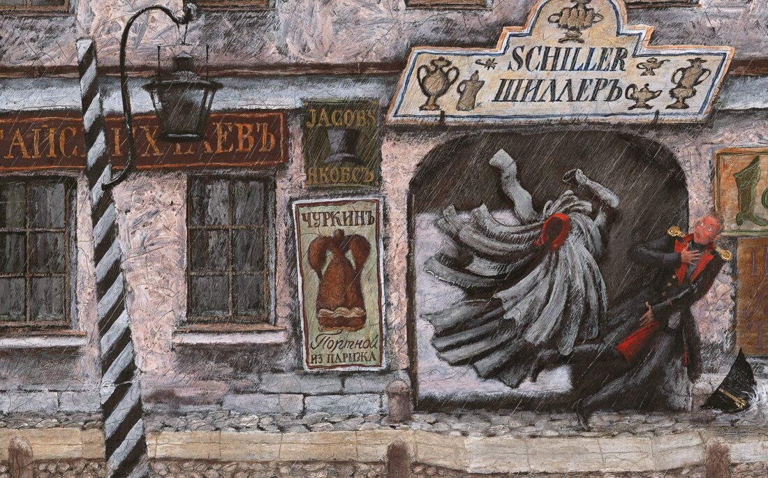 Эта книга — авторский проект замечательного петербургского художника Михаила Бычкова. «Нет ничего лучше Невского проспекта!..» — восклицает гоголевский рассказчик в начале повести. Сердце и душа Петербурга: блистающий огнями и манящий причудливыми вывесками, соединяющий все слои столичного населения — таков Невский проспект, главный герой Н. В. Гоголя. Но нет и ничего иллюзорнее и обманчивее Невского проспекта. «О, не верьте этому Невскому проспекту!.. Все обман, все мечта, все не то, чем кажется!». Так рисуется образ городского пространства, своеобразно объединяющего людей: оказавшись рядом, они по-прежнему разобщены и заняты своими делами. Игра света и тени, причудливое сочетание фантастики и реальности — эти особенности гоголевской манеры тонко прочувствовал Михаил Бычков и передал в цикле иллюстраций к повести.
