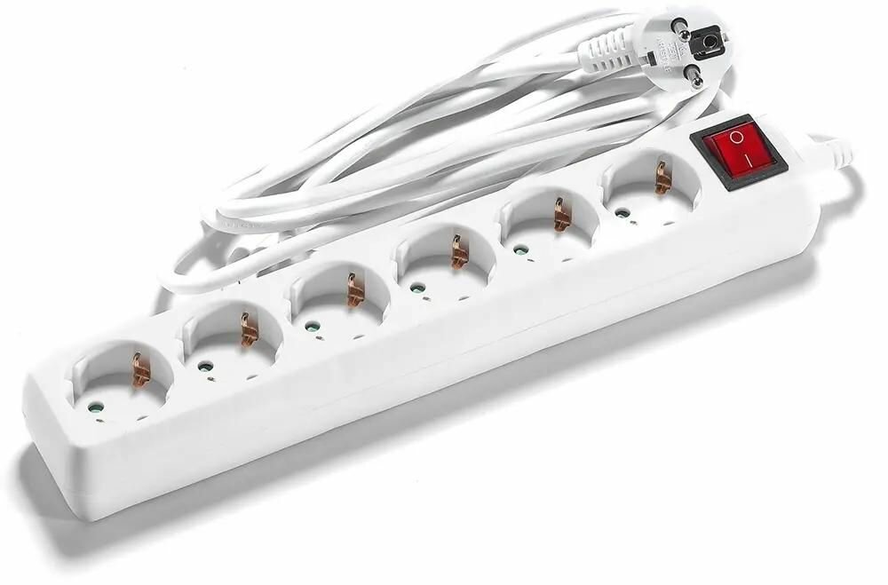 Удлинитель выполнен в белом цвете и имеет общий выключатель розеток, что делает его использование еще более удобным. Корпус изготовлен из прочного пластика, что обеспечивает долгий срок службы устройства. Максимальная мощность подключенной нагрузки составляет 3520 Вт, а максимальный ток нагрузки – 16 А.