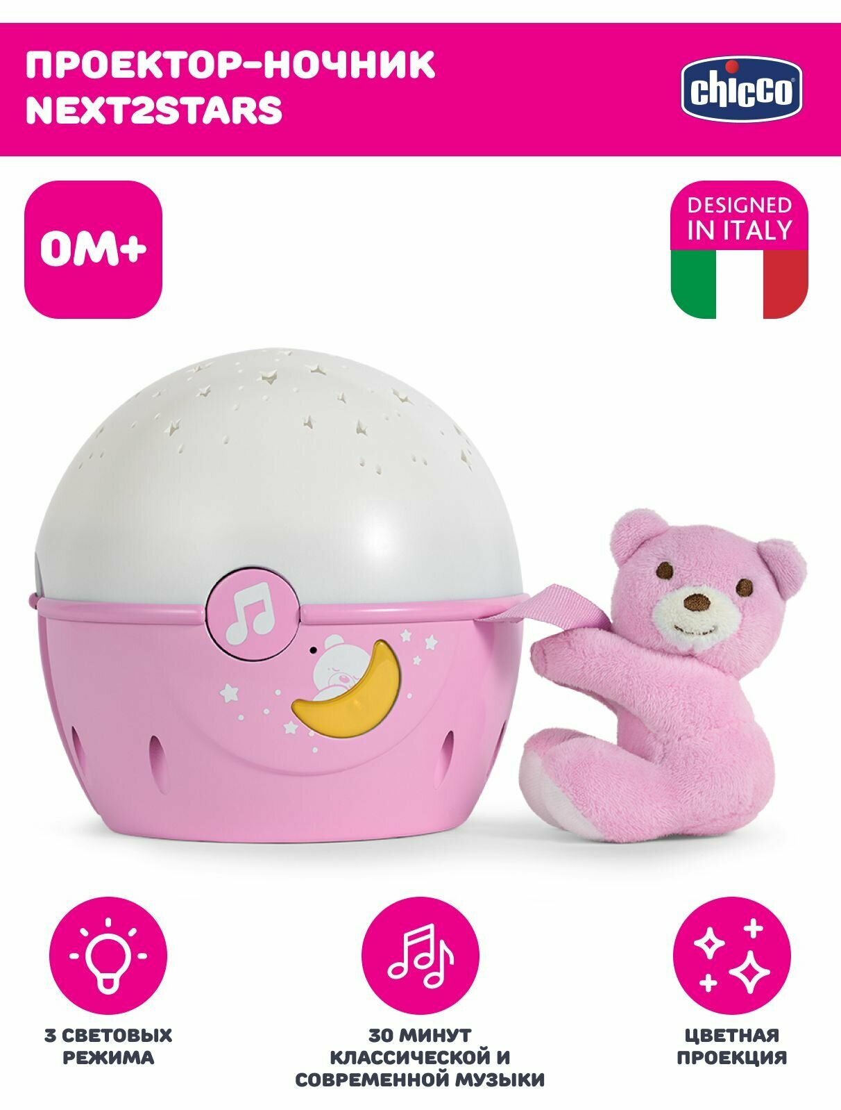 Ночник-проектор Chicco Next 2 Stars розовый (07647.10)