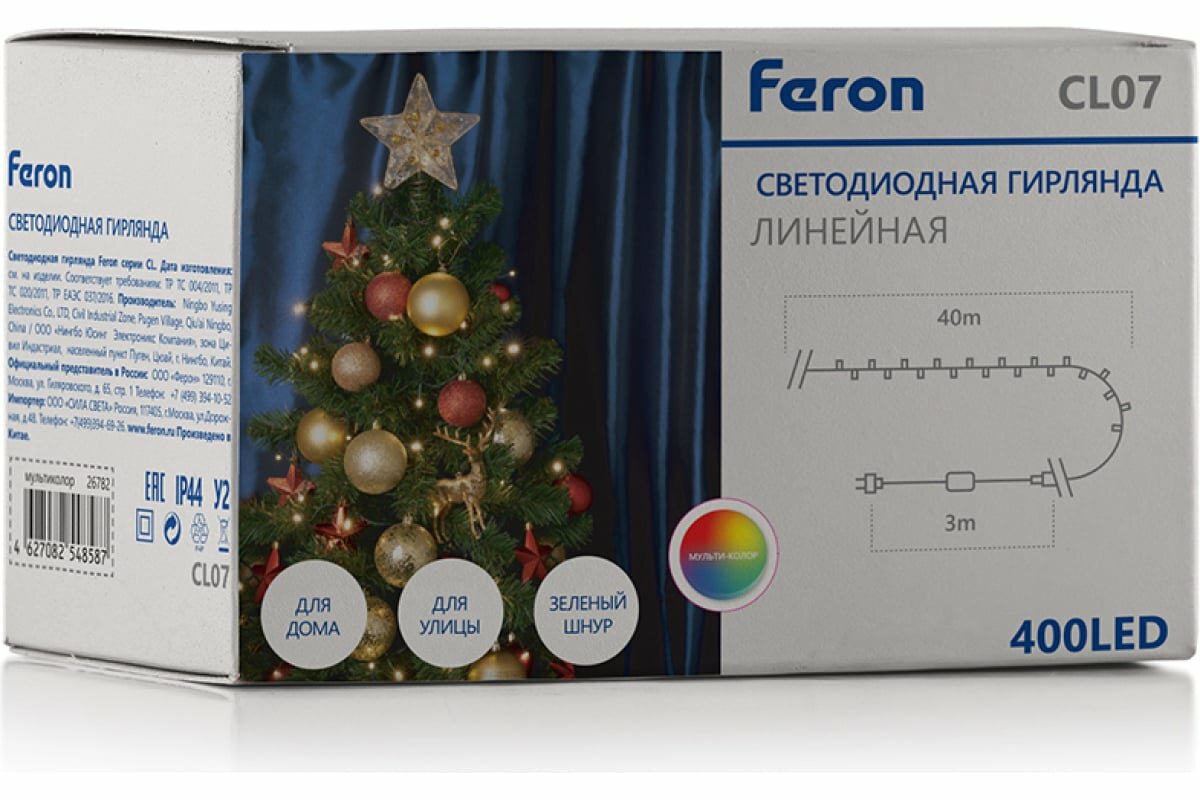 Светодиодная гирлянда Feron CL07 линейная 24V разноцветная c питанием от сети