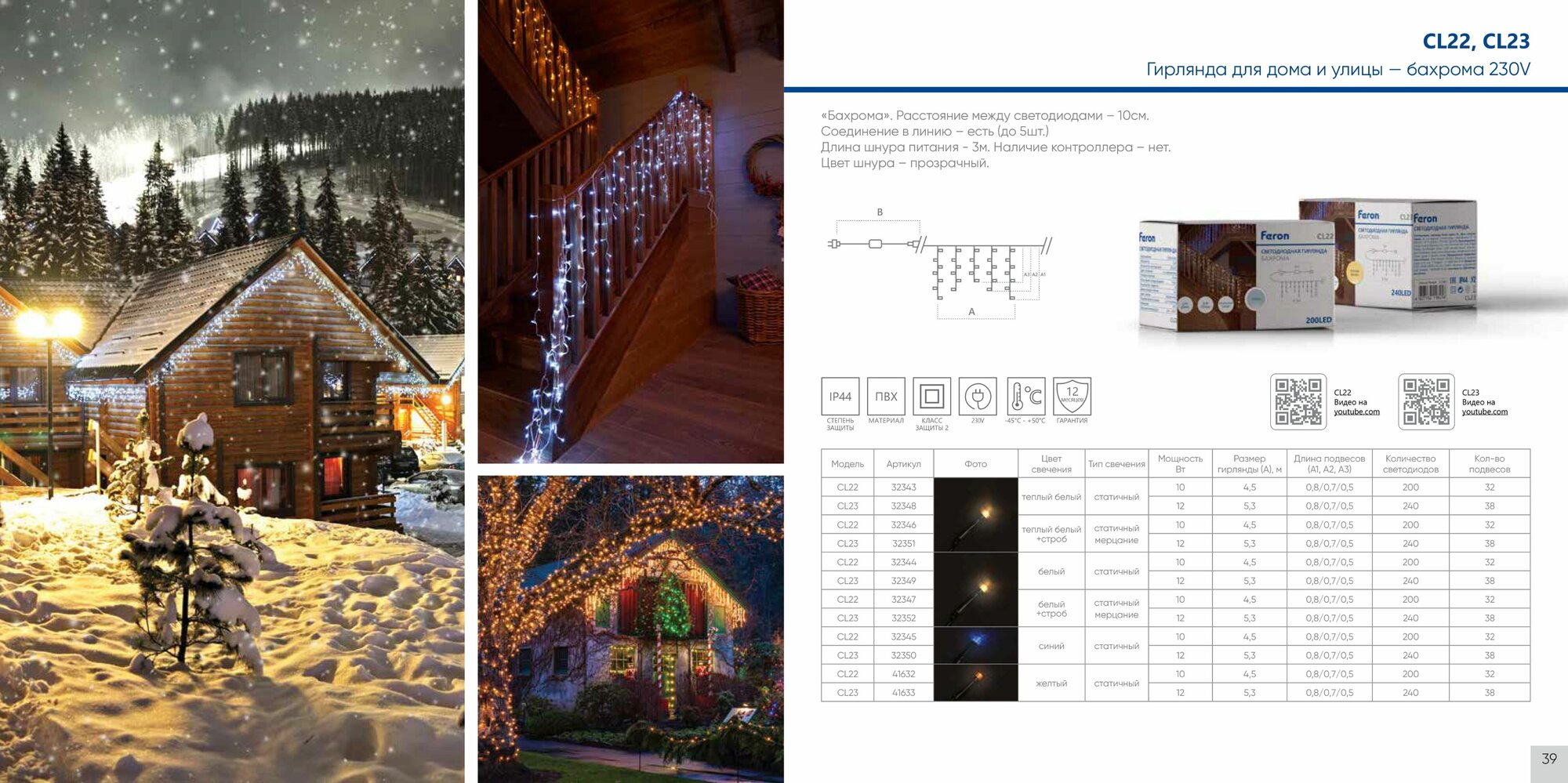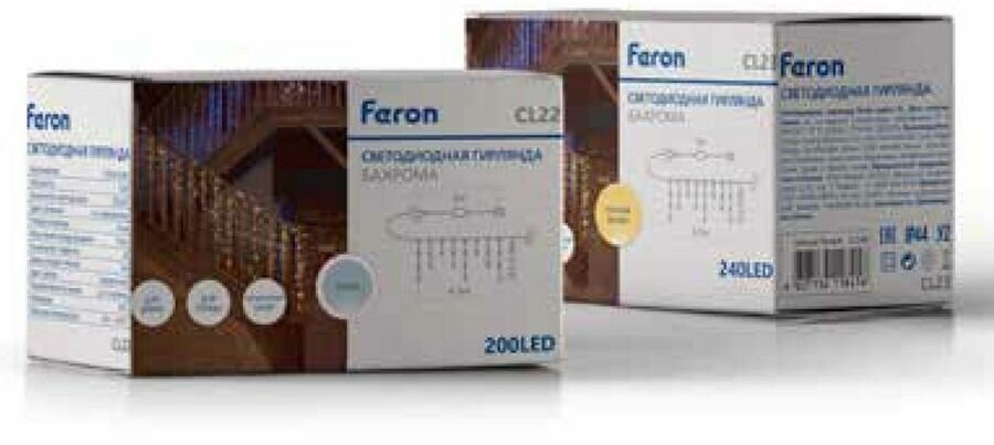 Гирлянда Feron . Освежит ваш интерьер. Длина 4.5 m. Параметры пылевлагозащиты IP — 44. Имеются встроенные светодиодные лампы, рассчитанные на весь срок службы светильника. Страна происхождения бренда — РОССИЯ.