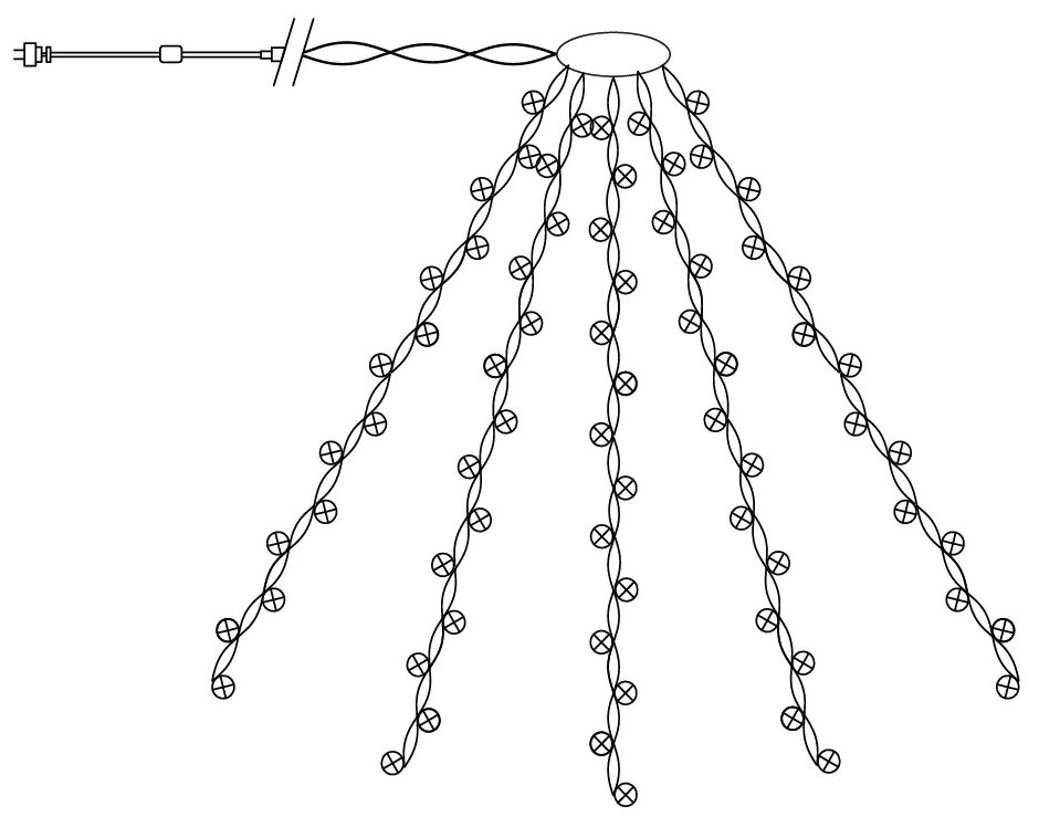 Гирлянда Feron . Создаст в помещении атмосферу комфорта. Длина 5 m. Имеются встроенные светодиодные лампы, рассчитанные на весь срок службы светильника. Страна происхождения бренда — РОССИЯ.