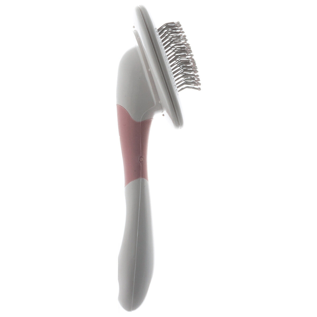 Предназначена для повседневного ухода за шерстью кошек и собак, имеет частую металлическую щетину. Удаляет старую шерсть, избавляет от спутывания и колтунов, стимулирует волосяные луковицы, придает шерсти здоровый пушистый вид. Эргономичная ручка с прорезиненной частью и выемкой для пальца вращается на 360 градусов для удобства использования. Длина зубьев: 12 мм. Диаметр зубьев: 0,35 мм. Длина ручки: 10 см.