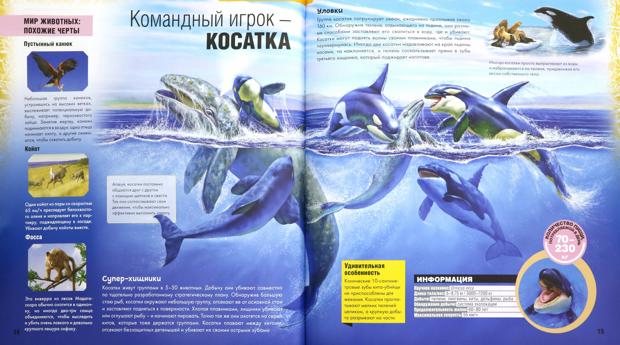 Мы с мужем читаем эти книги на ночь, и более потрясающе оформленных энциклопедий я давно не встречала. Особенно по такой привлекательной цене. В этой книге рассказывается о самых известных и необычных хищниках (о многих вы даже не слышали). Как всегда, очень сдержано об интересных фактах, важная информация, нет перегруженности, за счет этого все прекрасно запоминается. -