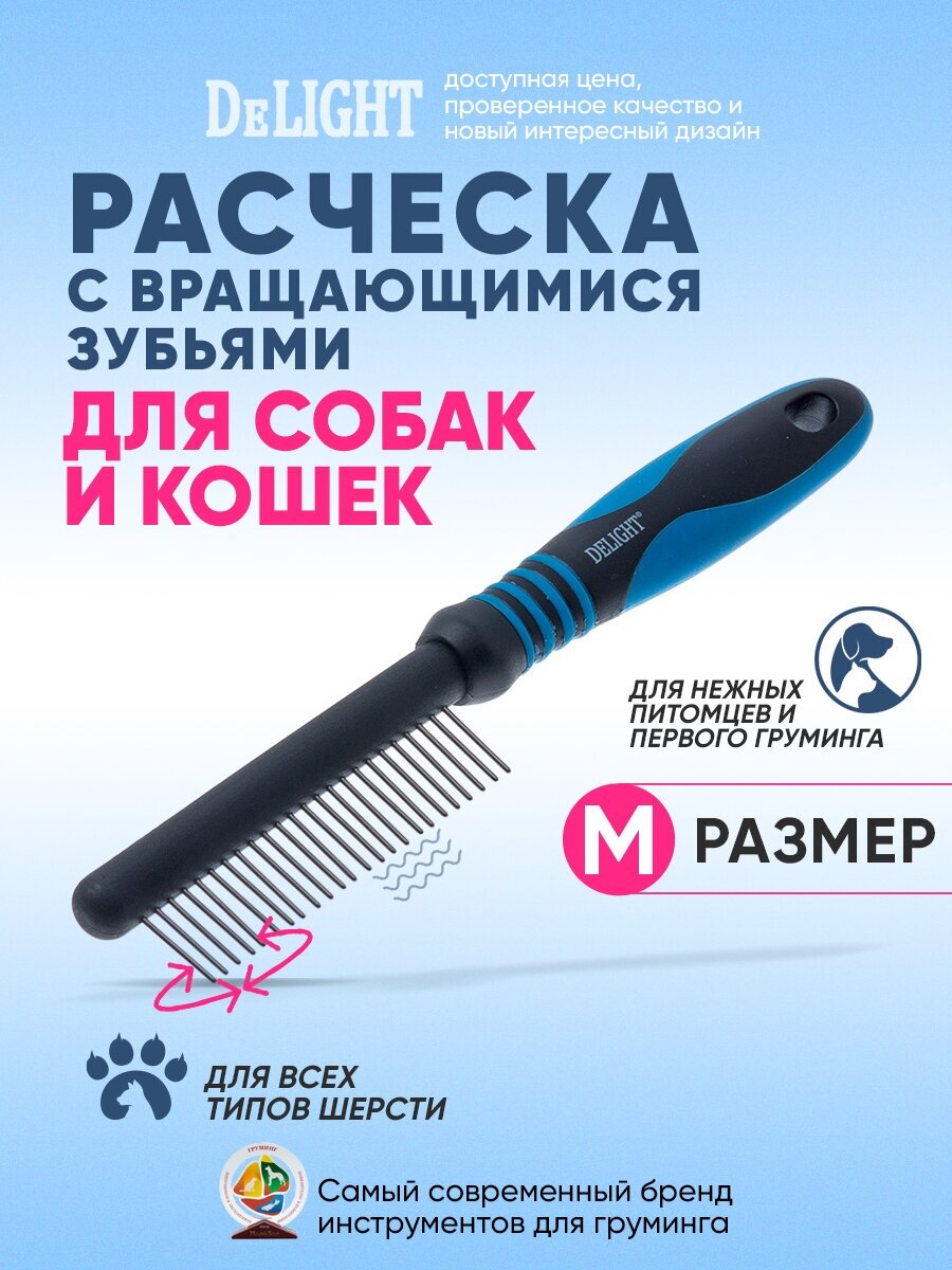 Предназначена для кошек и собак. Удаляет старую шерсть, грязь и предотвращает скатывание шерсти, способствуя оздоровлению и росту новой шерсти. Расчёска оснащена 24 вращающимися зубьями, которые легче скользят по шерсти, позволяя безболезненно распутывать ее. Закругленные кончики мягко и бережно воздействуют на кожу животного, а также создают массажный эффект. Расчёсывание следует начинать с концов и постепенно опускаться к корням шерсти.