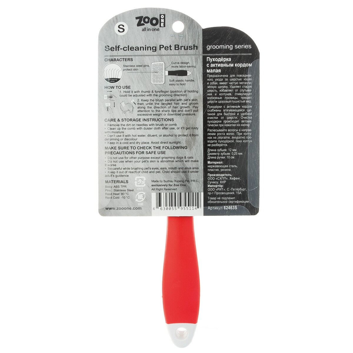 Пуходёрка ZooOne РЕД с активным кордом самоочищ. малая 62463S