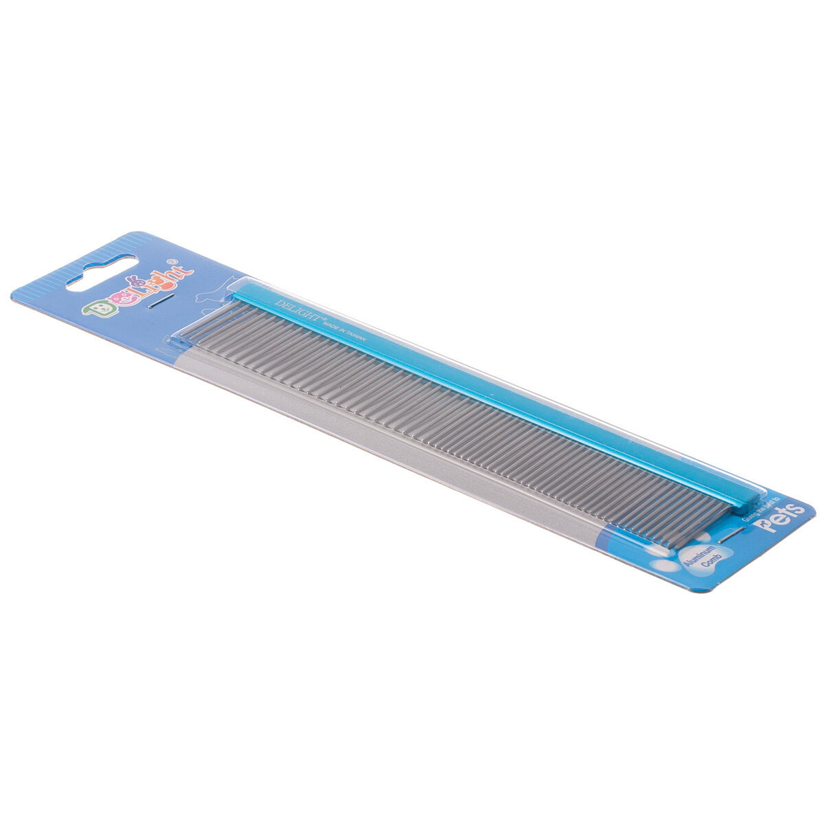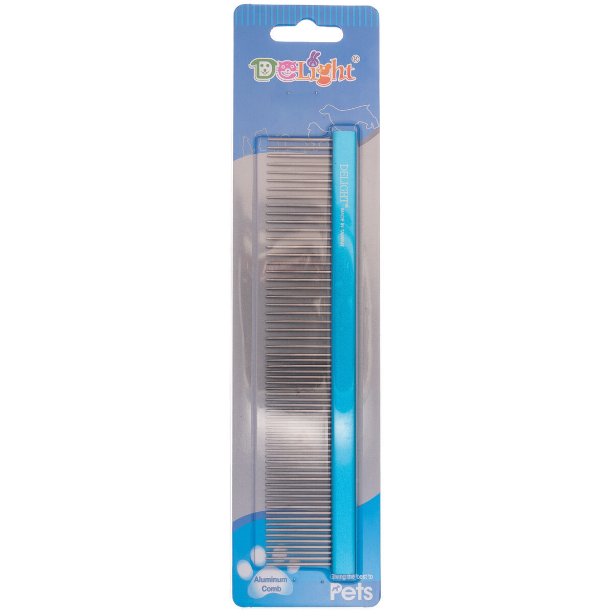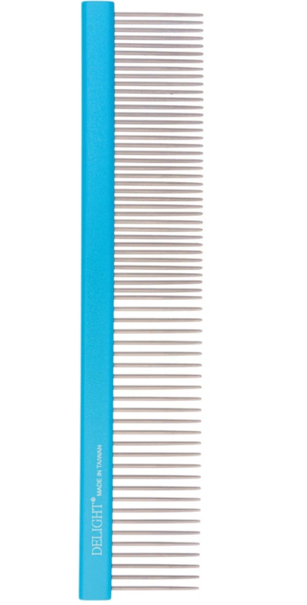 Расчёска DeLIGHT алюм. 19,5 см с плоской синей ручкой, зуб 2,8 см, 50/50 316650-6