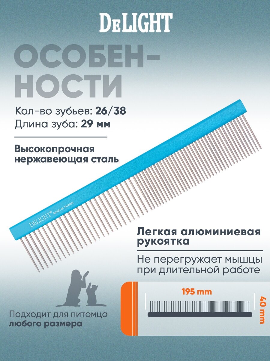 Сервис сравнения цен СкидкаГИД предлагает сравнить цены на товар «Расчёска DeLIGHT алюм. 19,5 см с плоской синей ручкой, зуб 2,8 см, 50/50 316650-6»