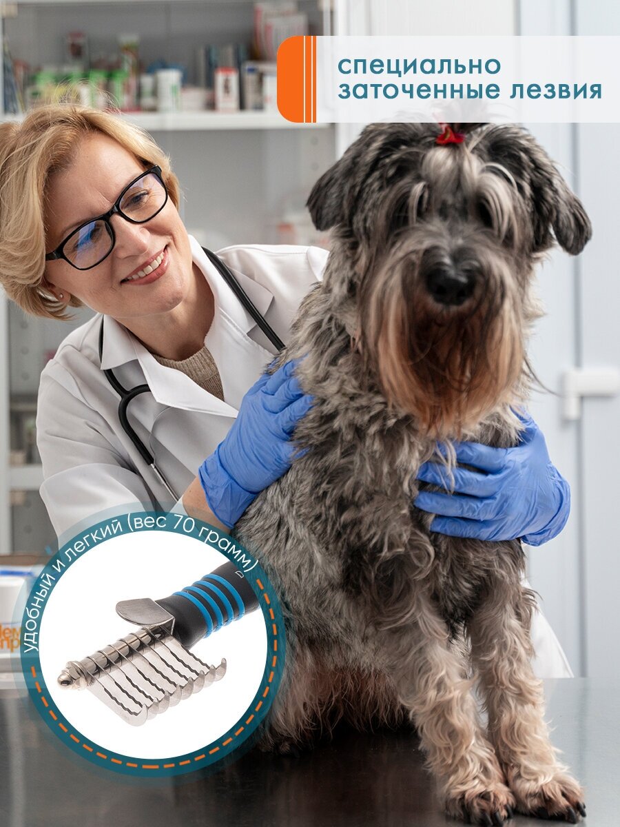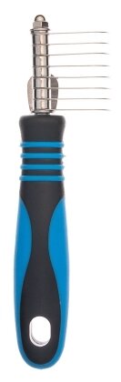 Для кошек и мелких собак. Лезвия изготовлены из долговечной нержавеющей стали, специально заточены, зазубренный край обеспечивает легкое удаление колтунов и минимизирует срезание шерсти. Ручка с упором для большого пальца, закруглённые края для большей безопасности. Инструкция: прочесывайте шерсть осторожно, избегая контакта лезвий с кожей животного, используйте расчески для окончательной обработки, лезвия предназначены только для резки волос, не использовать для резки другого материала, очень острые лезвия, использовать осторожно. Размер: Длина ручки 112 мм. Длина рабочей области 37,5 мм. Количество лезвий 8. Высота лезвий 30 мм. Толщина лезвий 0,5 мм.