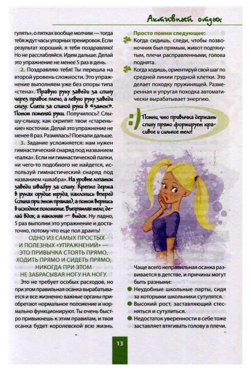 .Эта книга поможет тебе избавиться от лени, сделать досуг веселым, полезным и запоминающимся! Ты узнаешь, какой вид спорта тебе подходит и как поддерживать фигуру в отличной форме. Выберешь хобби по душе и раскроешь творческие способности. Научишься подчеркивать свои достоинства с помощью одежды, сочетать цвета и подбирать аксессуары. Определишь свой тип кожи и выберешь нужные средства для ухода. И, конечно, станешь настоящей леди – пунктуальной, организованной, с широким культурным кругозором и разносторонними интересами!