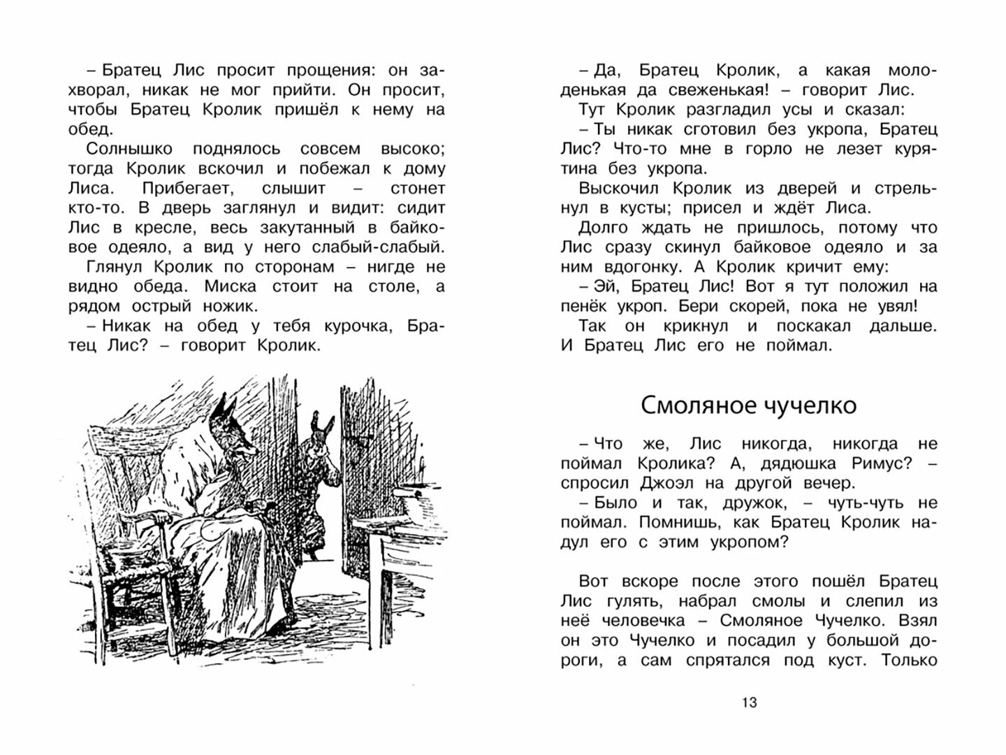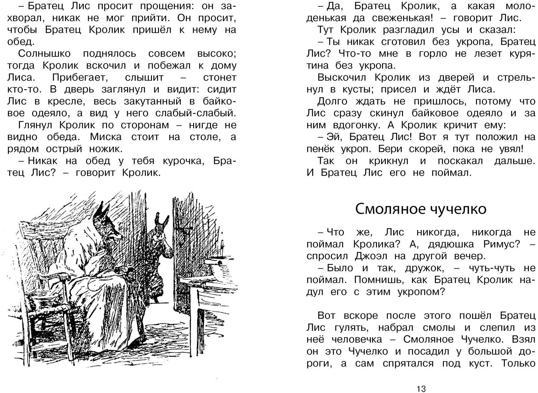 Герой этих весёлых и смешных сказок - Братец Кролик, затейник, каких поискать! Из всех передряг он выйдет сухим из воды. Ни Братец Лис, ни Братец Черепаха, ни Братец Медведь, - никто ему и в подмётки не годится. Когда-то истории о проделках зверей были рассказаны дядюшкой Римусом своему маленькому другу мальчику Джоэлу, который впоследствии стал известным детским писателем и фольклористом Джоэлом Чандлером Харрисом.