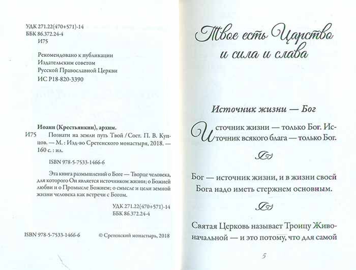 В книгу архимандрита Иоанна (Крестьянкина) "Познати на земли путь Твой" вошли размышления о Боге - Творце человека, для которого Он является источником жизни; о Божией любви и о Промысле Божием; о смысле и цели земной жизни человека как встречи с Богом.