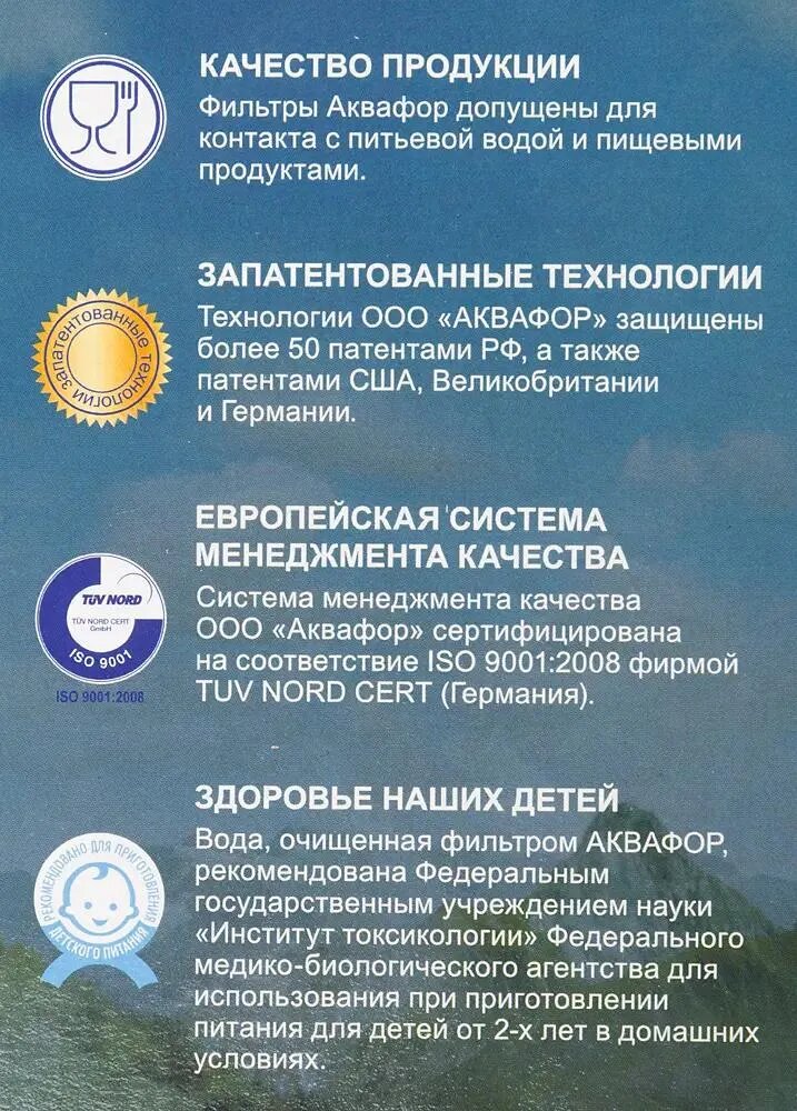 | Состав картриджа | активированный уголь, аквален, ионообменная смола |