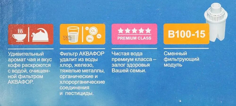 | Аквафор Лайн комплектуется сменным модулем B100-15, но к нему подходят и другие сменные модули Аквафор | |