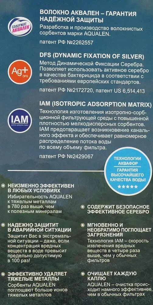 Аквален захватывает из воды тяжелые металлы (ртуть, свинец, медь, мышьяк), которые нередко находят в водопроводной воде.