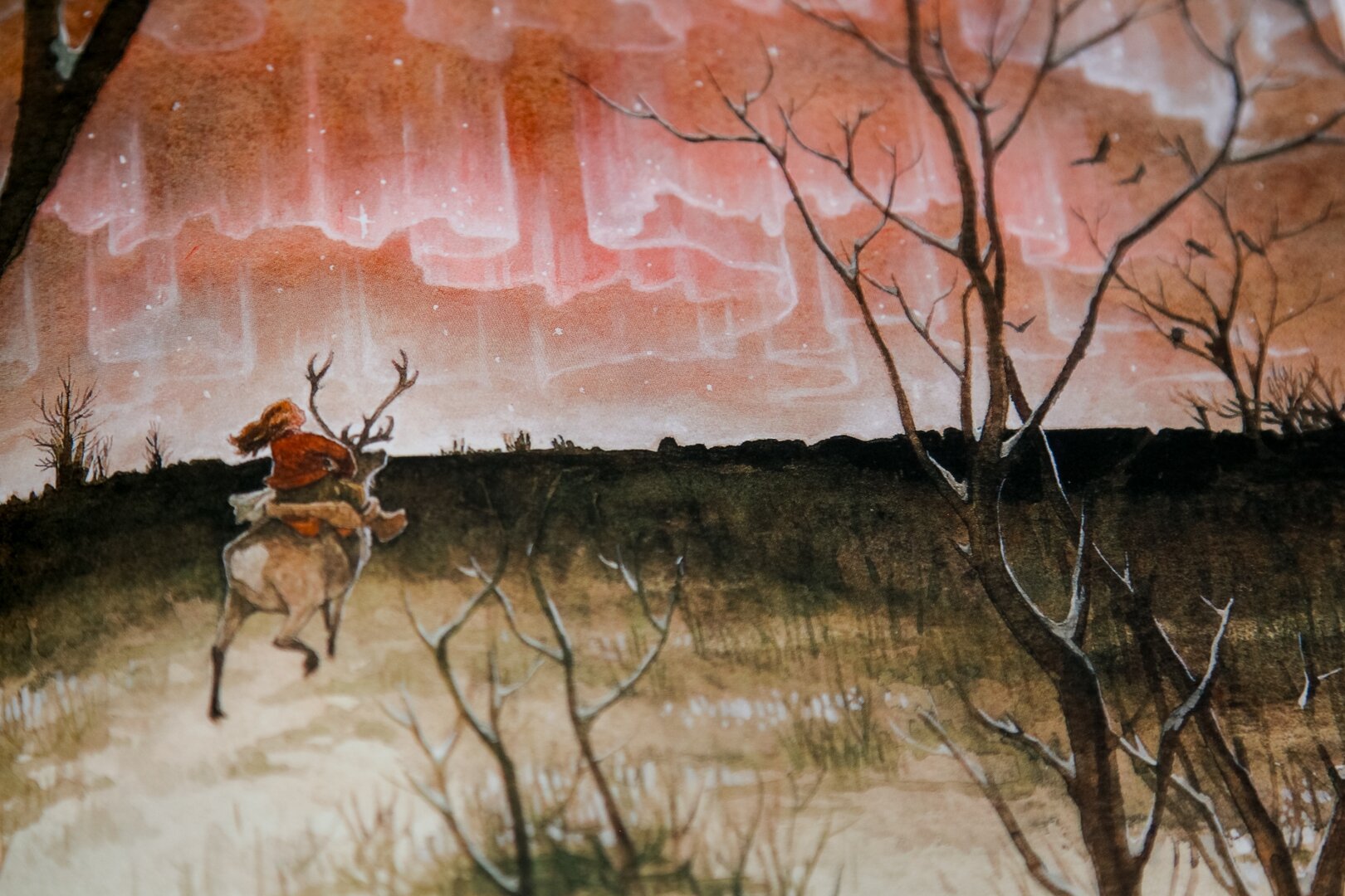 Книга красоты невероятной, недостижимой. Мы привыкли к советской иллюстрации, к классической британской — даже к топорно-диснеевской. Но попадается и такое. Когда мир сказки вполне сопоставим с миром самого видения художника, и не уступает ему практически ни в чем. Жемчужина коллекции детского шкафчика, бесспорно. Браво, «Качели». И Патрик Джеймс Линч — запомним это имя. И не могу не отметить замечательную синюю глазурь на обложке. Великолепие!