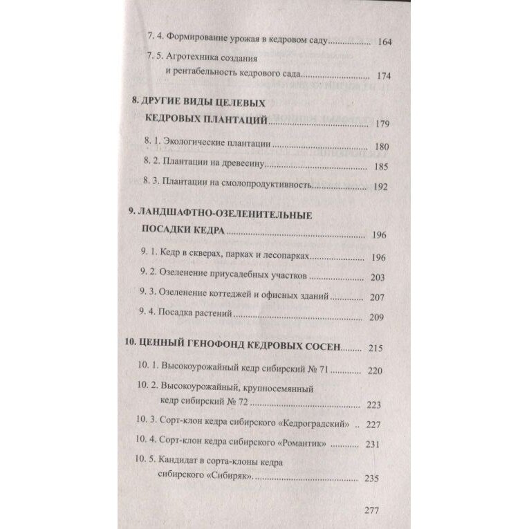 .Впервые в отечественной литературе излагаются способы создания высокоурожайных прививок и кедровых садов, рентабельность кедрового сада, формирование высокопродуктивных и других промышленных плантаций, оригинальных ландшафтно-озеленительных посадок разных видов кедровых сосен в скверах, парках, при озеленении приусадебных участков, коттеджей, офисных зданий.