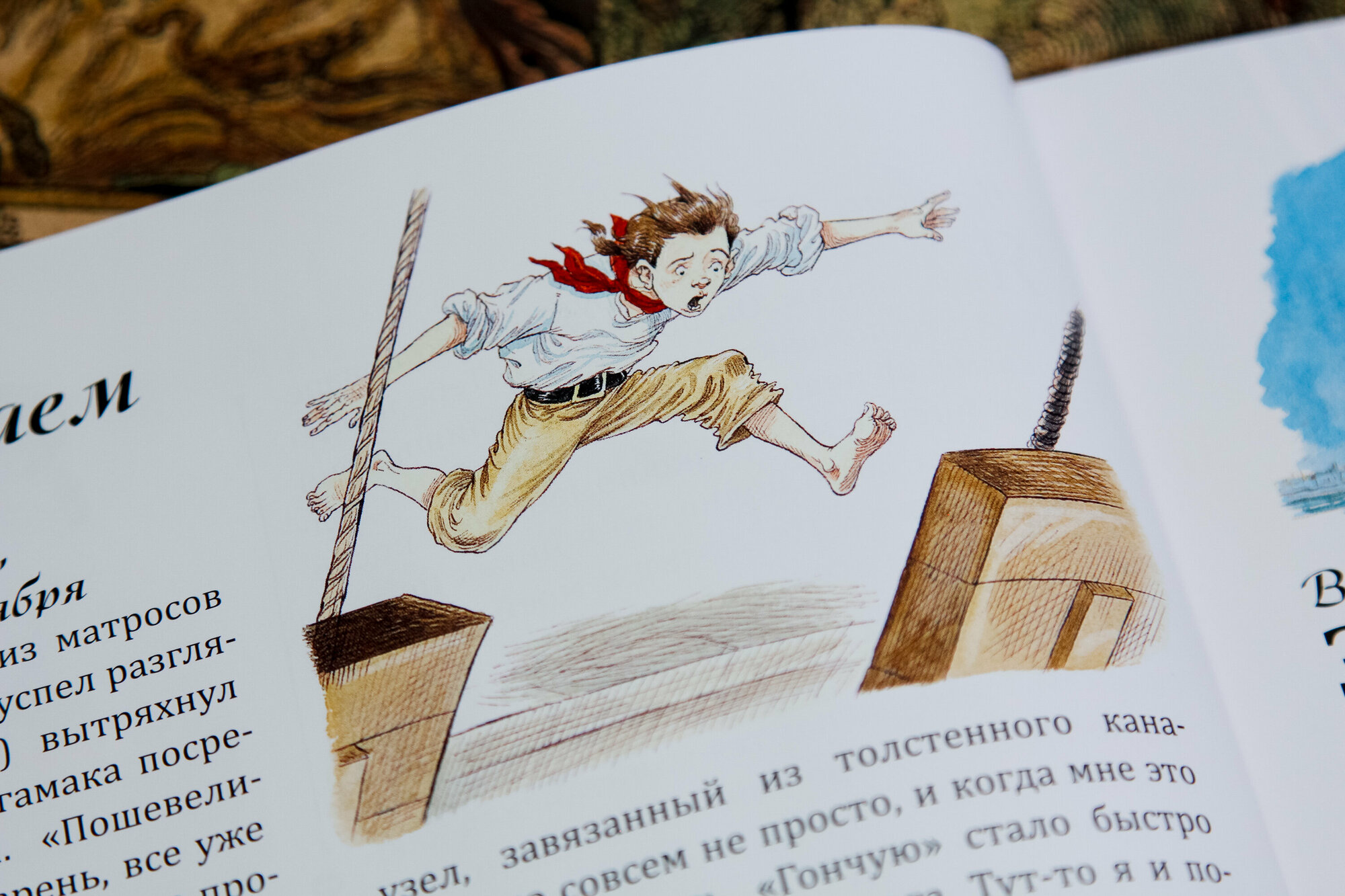 Порадовал текст — читается легко, но нисколько не «пресно» (как это иногда бывает, когда повествование ведется от лица ребенка). Огромное количество пиратских терминов, всё подробно объясняется и иллюстрируется.