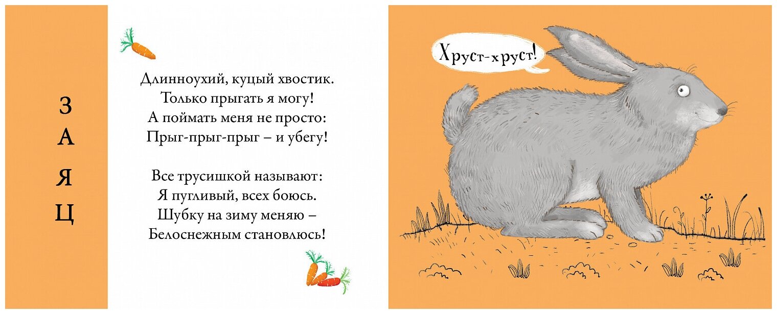 В книге вы найдете яркие и добрые изображения 12 животных на однотонном фоне, дополненные весёлыми стихотворениями Евгения Сосновского, которые описывают характерную внешность животного (рога, хвосты, уши и т. д.), особенности их поведения, а так же звуки, которые они издают. Благодаря конструкции книги, из двух половинок картинки можно сложить 144 животных, а слева при этом сложится его забавное название и описание в стихах. Занятия с этой книгой развивают воображение, речь, внимание, мышление, слух и улучшают настроение! Ведь собирать животных так весело как с родителями, так и самостоятельно. В серии подобраны самые основные животные по трём темам: дикие, домашние и лесные. Плотные страницы с закругленными краями и специальным защитным покрытием безопасны для малыша, картон не расслаивается, благодаря чему книга прослужит очень долго.
