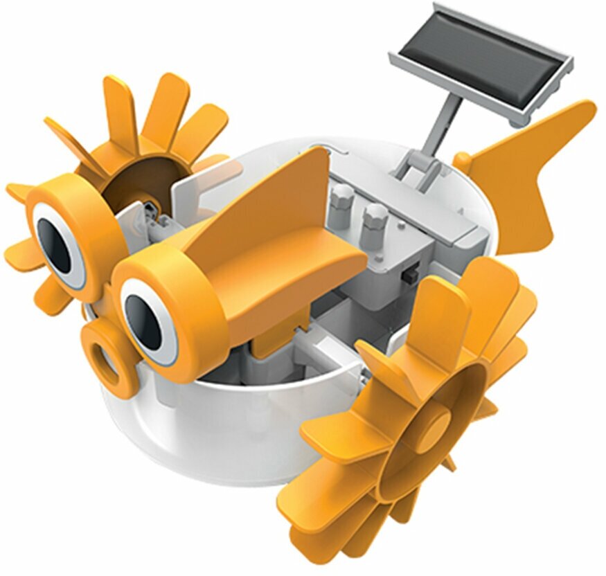 Вау, гибридный аквабот! Он плывет, получая энергию от солнечной панели, а в отсутствие солнца работает от обычной батарейки. Соберите его своими руками и запустите в плавание по ванне или бассейну.