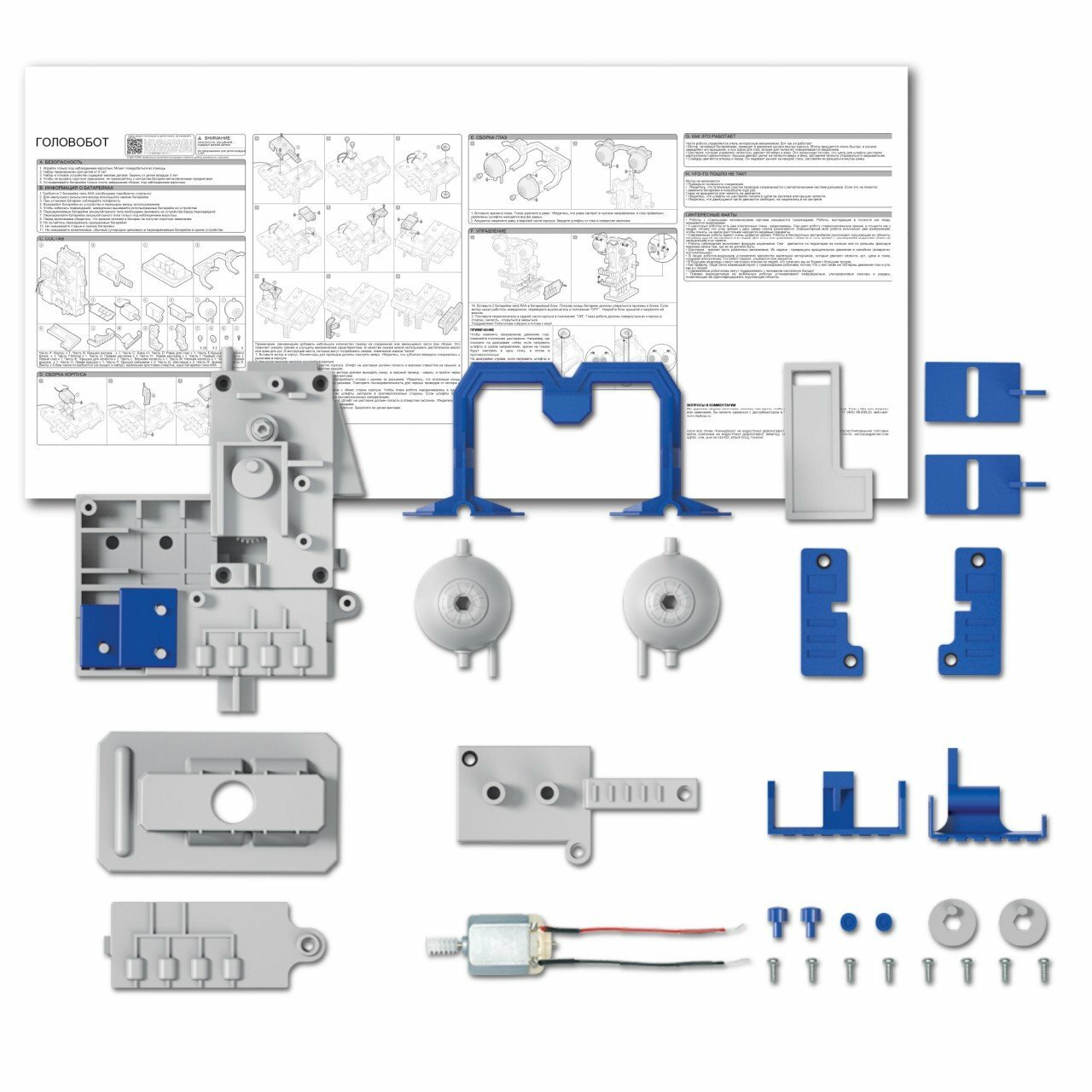 Вы посмотрите! Умный механизм заставляет глаза робота двигаться из стороны в сторону, а челюсти — открываться и закрываться. Соберите умопомрачительного головобота своими руками и узнайте, как он работает.