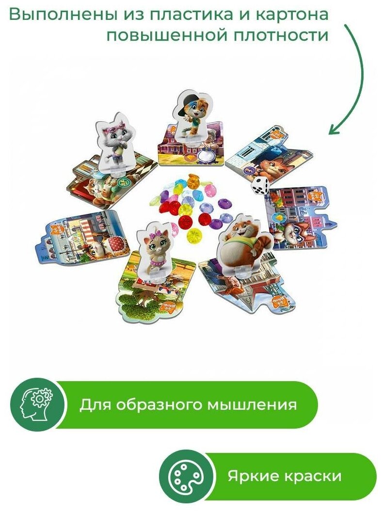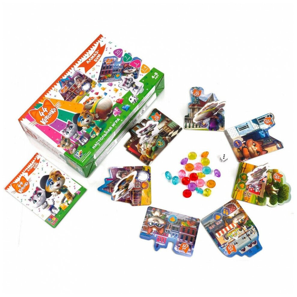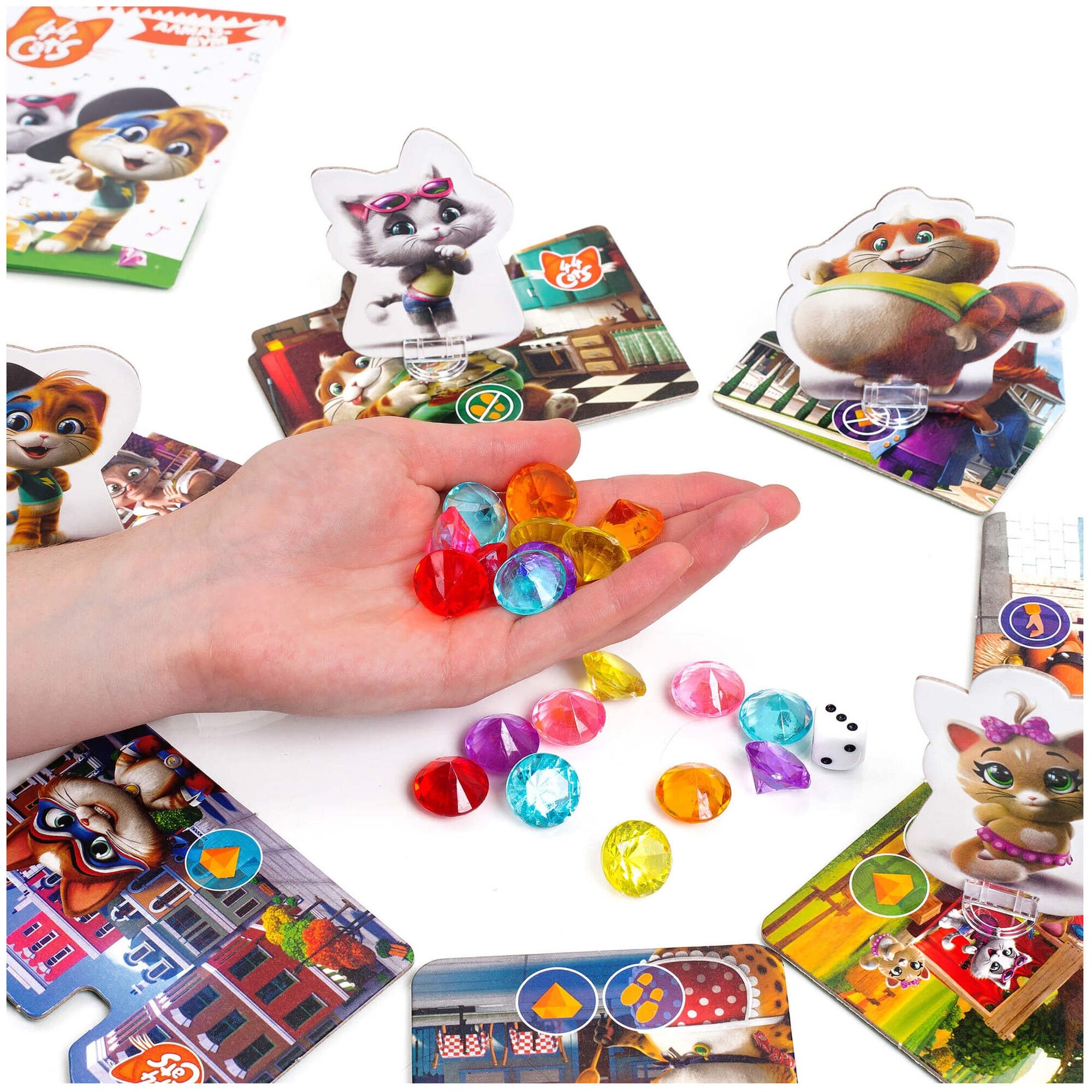 Vladi Toys Игра настольная 44 Котенка Алмаз-Бум Присоединяйтесь к команде пушистых котят и отправляйтесь навстречу новым приключениям! Интересные локации, неожиданные повороты, настоящий алмазный бум и множество других интересностей уже ждут вас. В ходе игры вам предстоит передвигаться по игровым полям и собирать алмазы. Подбрасываем по очереди кубик и движемся вперёд. Победит тот, кто соберёт больше всех драгоценностей. Настольная игра гарантированно поднимет настроение и потренирует воображение, логическое мышление, речь и коммуникативные навыки.