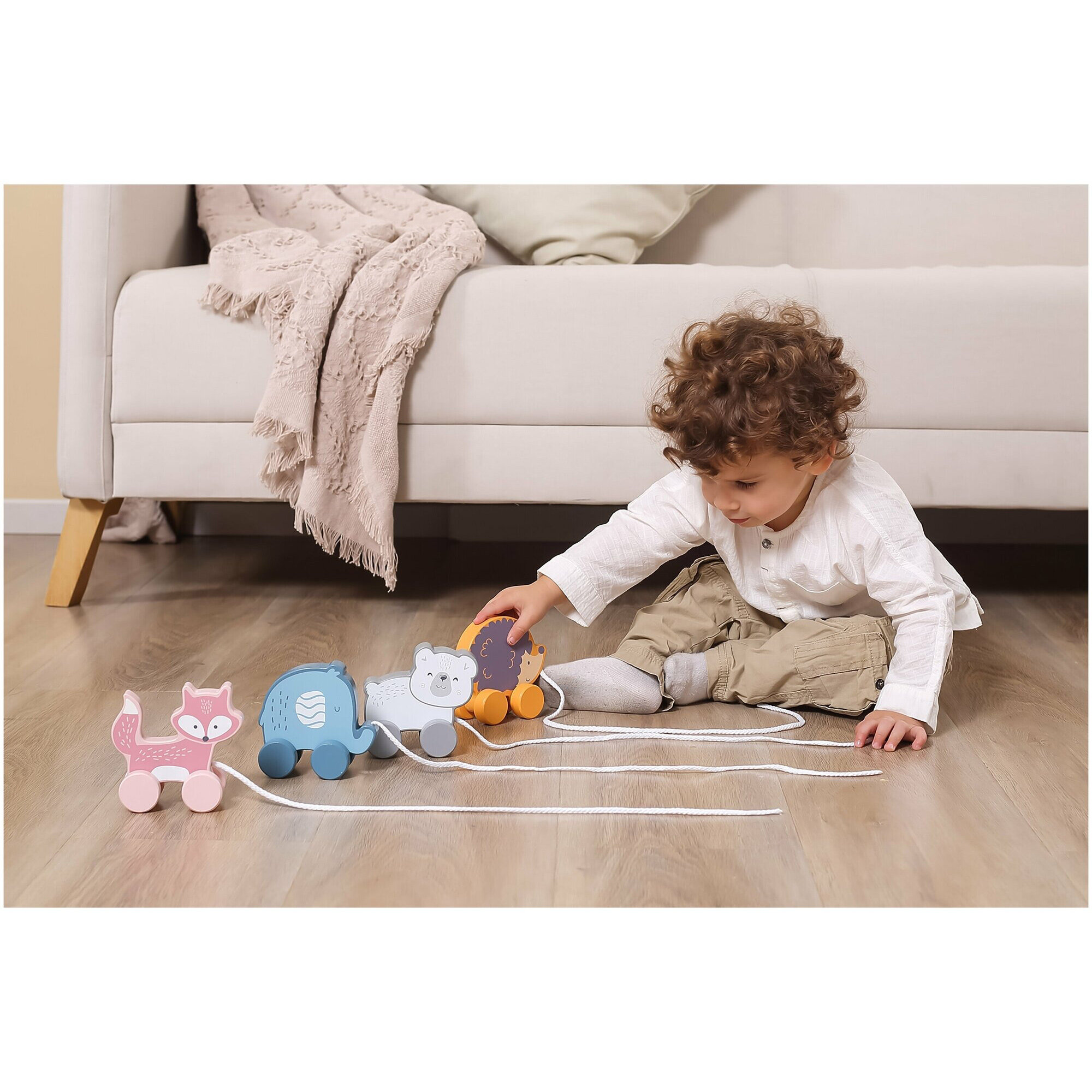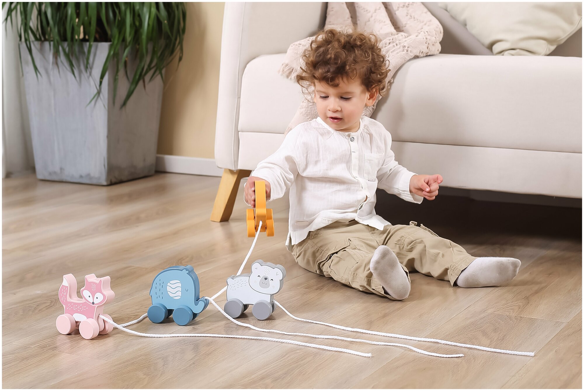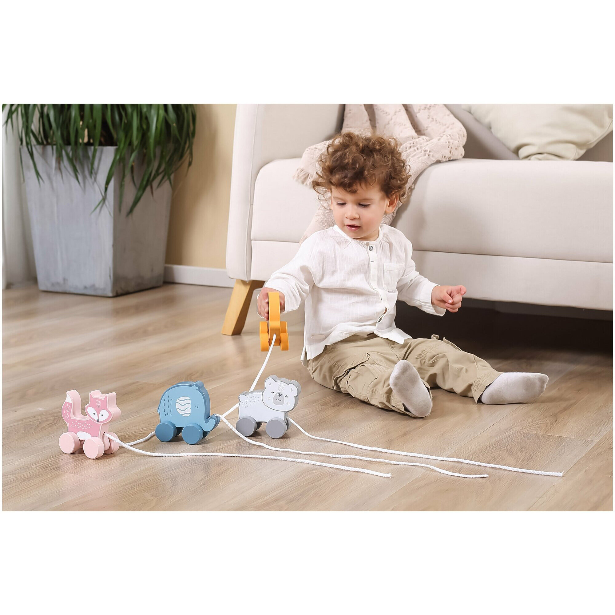 Деревянная игрушка-каталка серии PolarB для малышей от 1, 5 года. Выполнена в виде милого животного на четырех колесах со шнурком, окрашена в пастельные цвета.Для изготовления каталки использована качественная древесина и безопасные красители. Все края и детали тщательно отшлифованы. Игрушка-каталка соответствует стандартам безопасности и качества: европейскому EN71, американскому ASTM, как и вся продукция Viga Toys.