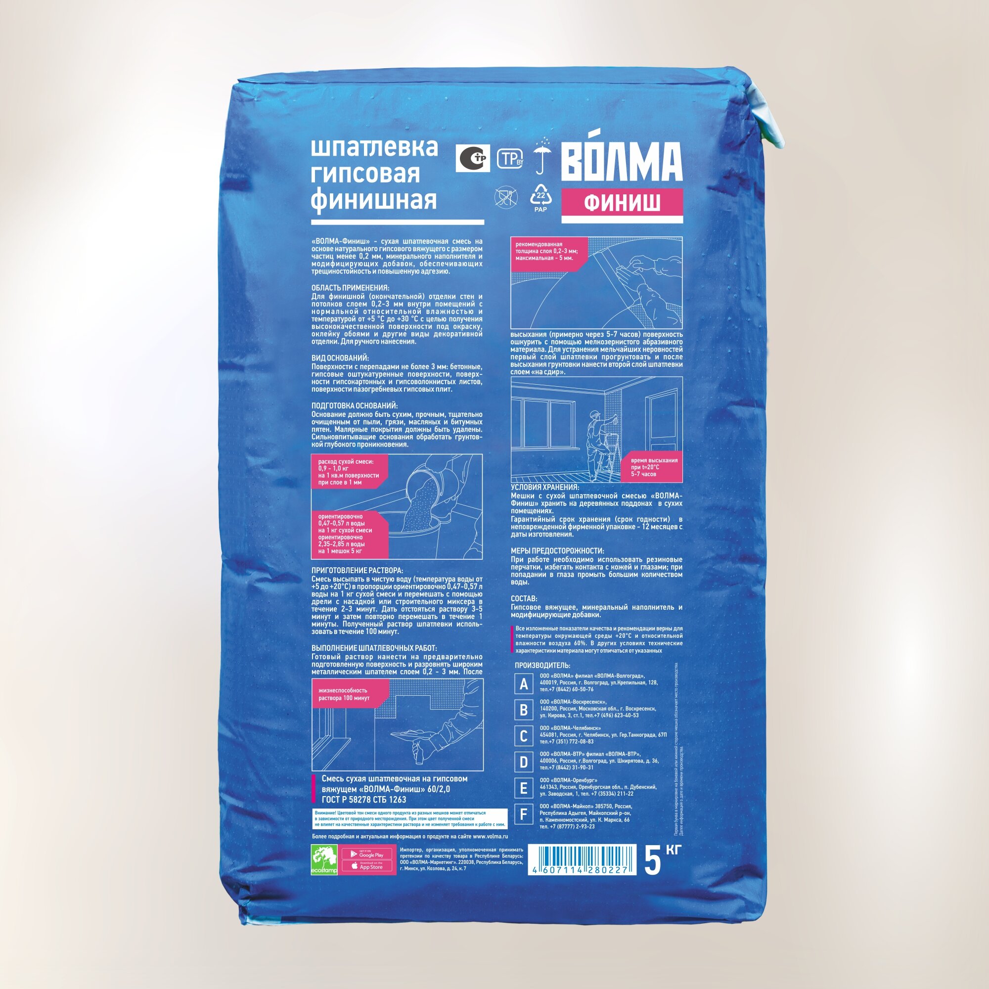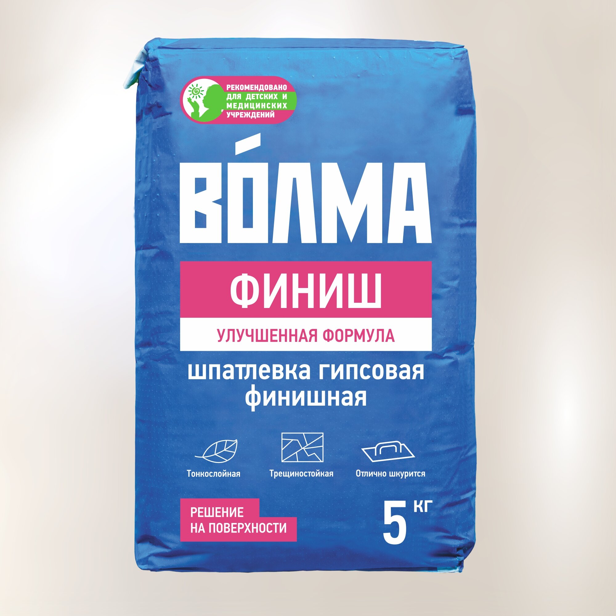 ВОЛМА-Финиш предназначена для финишной (окончательной) отделки стен и потолков внутри помещений с нормальной относительной влажностью с целью получения высококачественной поверхности под покраску, оклейку обоями и другие виды декоративной отделки.