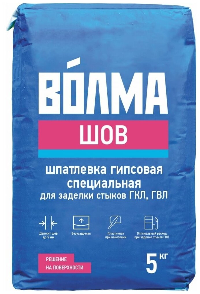 Шпаклевка ВОЛМА Шов на гипсовой основе для стыков ГКЛ и ГВЛ 5 кг