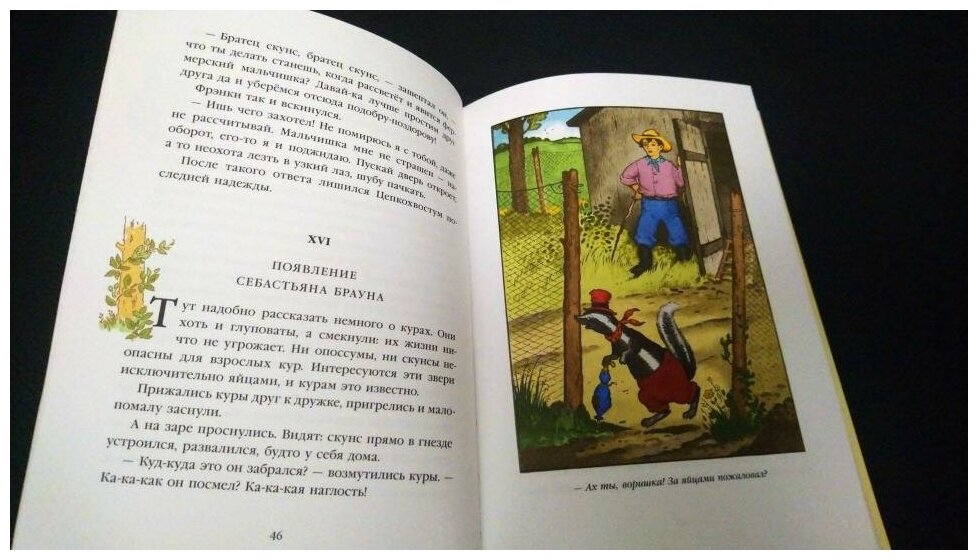 Достойное продолжение серии после Кролика Питера Хвостпомпоном. Отличное качество - книга легкая, удобный небольшой формат, тактильно приятная обложка. Очень нравится перевод. Много образных выражений, устойчивых словосочетаний, пока новых для четырехлетки. Еще читая первую книгу, часто застревали на них с ребенком. Расцениваю подобные затыки только со знаком плюс. К плюсам отношу еще и ненавязчивые познавательные моменты книги - как видит кролик, что является секретным оружием скунса, с какой стороны подбирается к своей добыче лис и т.д. Дочитываем вторую книгу и уже в ожидании третьей.