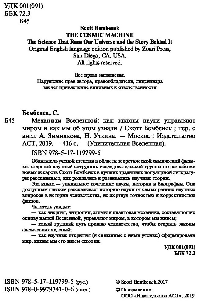 Механизм Вселенной. Как законы науки управляют миром и как мы об этом узнали (Скотт Бембенек); АСТ, 2019