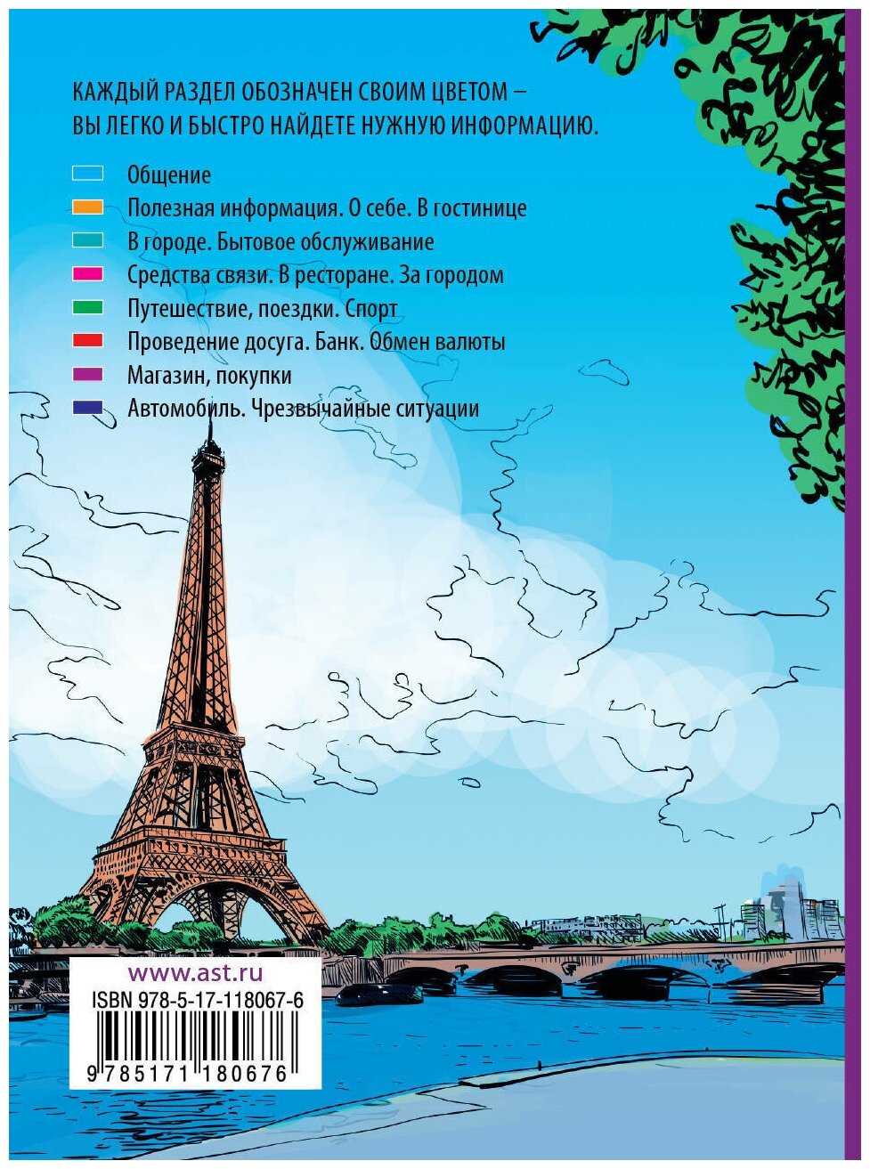 Французский разговорник содержит самые необходимые темы и наиболее типичные модели фраз и выражений. Французский текст снабжен практической транскрипцией, передающей звуки французского языка средствами русской графики. Каждый раздел обозначен своим цветом - вы легко и быстро найдете нужную информацию.