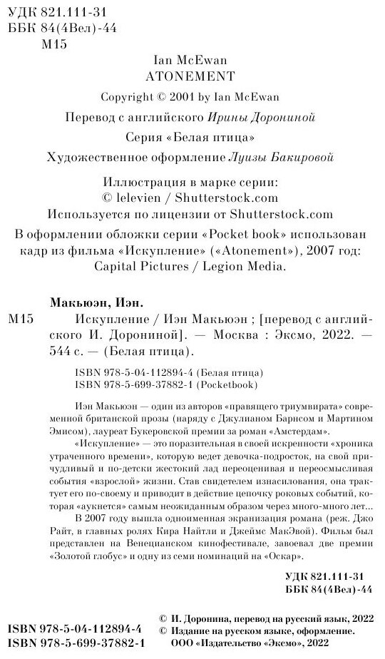Книга: Искупление (Иэн Расселл Макьюэн); Эксмо, Редакция 1, 2023