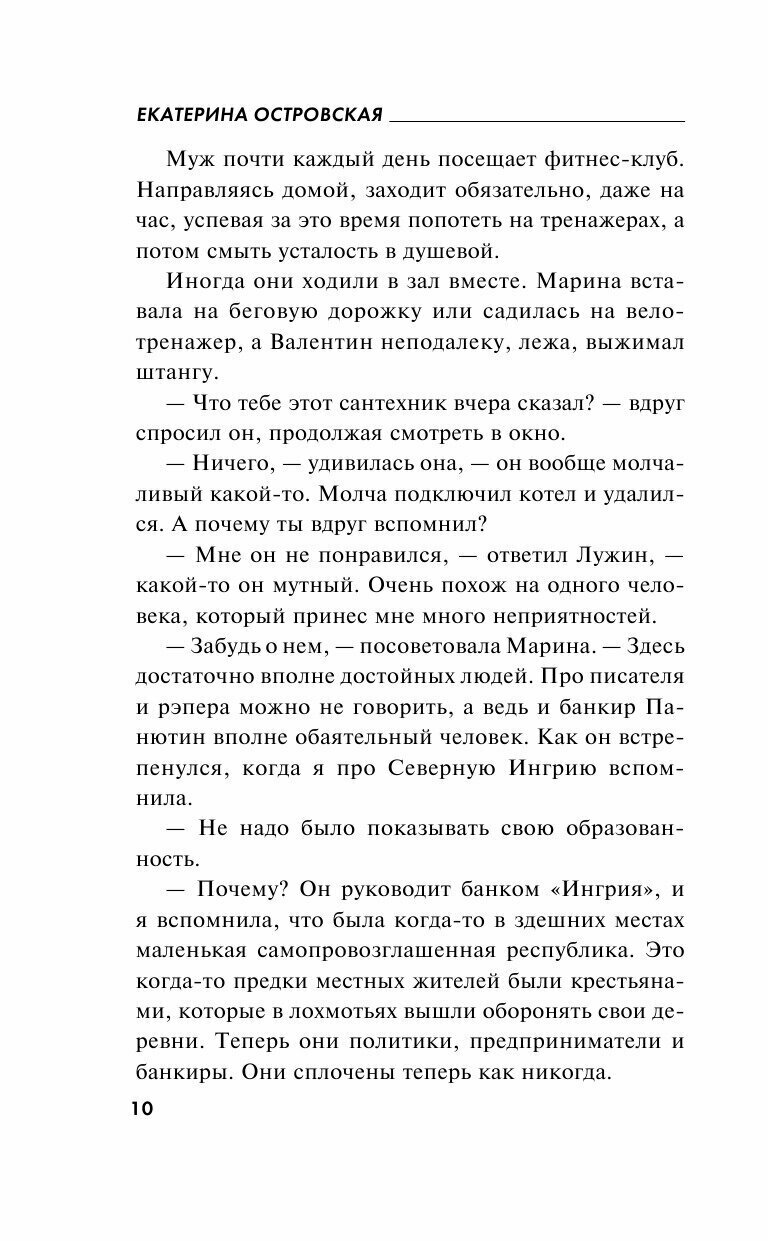 Марина считала себя счастливой женщиной, ведь у нее такой замечательный муж – любящий, заботливый, верный и вдобавок щедрый! Валентин сделал супруге потрясающий сюрприз — привез ее в огромный загородный дом, который он приобрел в роскошном поселке. Тихое чистое место, интеллигентные соседи – известный писатель, молодой компьютерный гений, рэп-исполнитель, глава банка. Кто же мог предполагать, что в этом райском местечке произойдет преступление! На местном празднике застрелили банкира, и теперь под подозрением все жители элитного поселка…