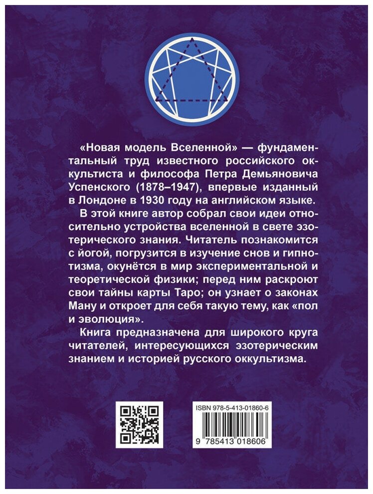 Долгое время сомневался - нужна ли мне эта книга, не повторяет ли она содержание других книг Петра Демьяновича Успенского, уже имеющихся у меня, читаных-перечитаных ещё во времена "самиздата". Наконец решил заказать - и теперь жалею лишь о том, что не сделал этого раньше! Книга очень важная. В частности, начинать чтение "Драматической Вселенной" Дж. Г. Беннетта, не прочтя прежде книгу Успенского, не было особого смысла - ведь Беннетт в своём фундаментальном четырёхтомном труде развивает именно те идеи, которые Пётр Демьянович сформулировал в "Новой модели Вселенной".