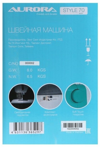 Швейная машинка Aurora STYLE 70 простая в пользовании , лёгкая , быстро выполняет действия какие надо много она выполняет действий и цена не дорогая.Магазин отличный товар дошёл без проблем.Всам советую эту швейную машинку. Отличное качество товара!
