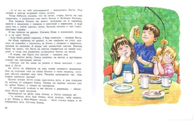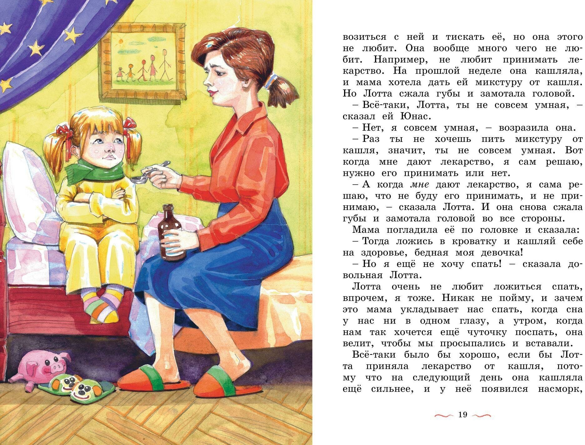 Очень понравилось издание. Книга весьма бюджетная, что совершенно не сказалось на качестве печати или переплёта, иллюстрации очень яркие и красочные, детям понравились. Читаем и перечитываем снова. Теперь о содержании. Это истории о девочке Лотте с трудным характером, зачастую доставляющем проблемы всем вокруг и Лотте самой, конечно тоже, и её замечательной любящей семье : маме, папе, старших брате и сестре, и ещё прекрасной соседке тётушке Берг, которые удивительно тонко и чутко помогают Лотте увидеть последствия её поведения и справиться с любой проблемой. Рекомендую всем родителям.