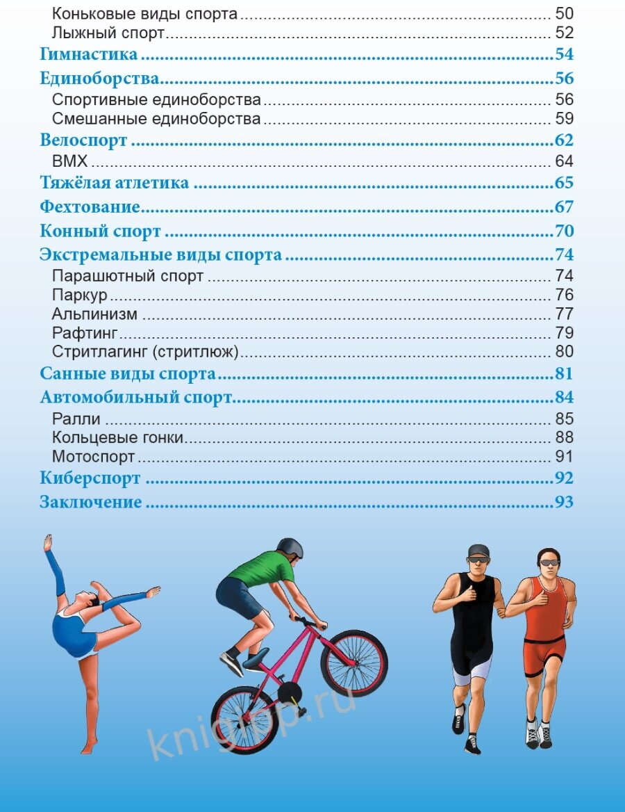 В этой энциклопедии вы найдёте сведения об основных видах спорта. Яркие и красочные иллюстрации помогут разобраться в особенностях отдельных спортивных дисциплин. Помимо олимпийских видов спорта, вы познакомитесь и с некоторыми новейшими дисциплинами, а также старинными спортивными играми и соревнованиями.