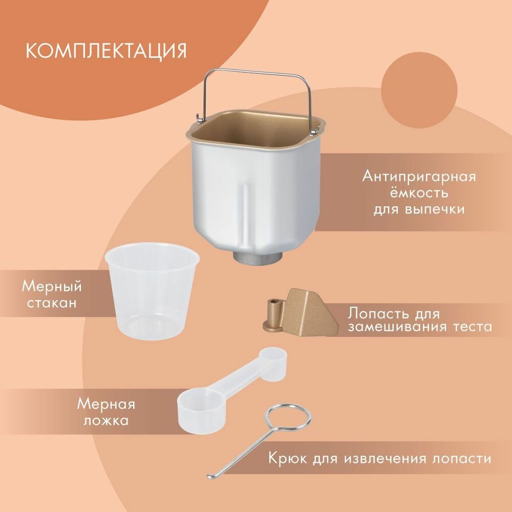 | Комплект поставки | Хлебопечь, крючок для извлечения лопасти, мерный стакан, лопасть для замешивания, мерная ложка, документация |