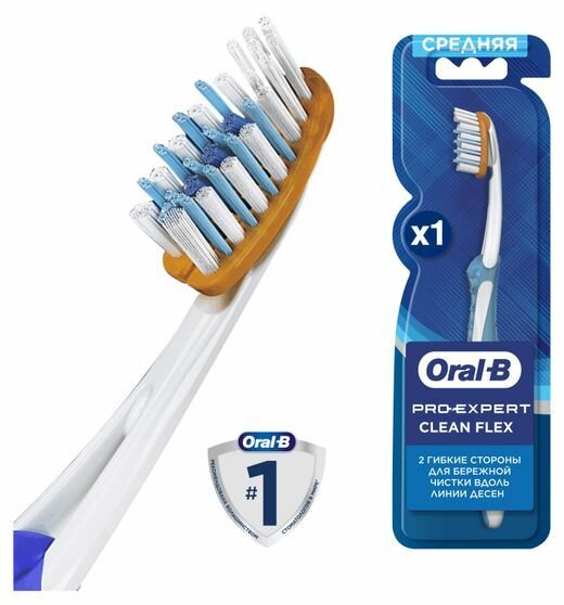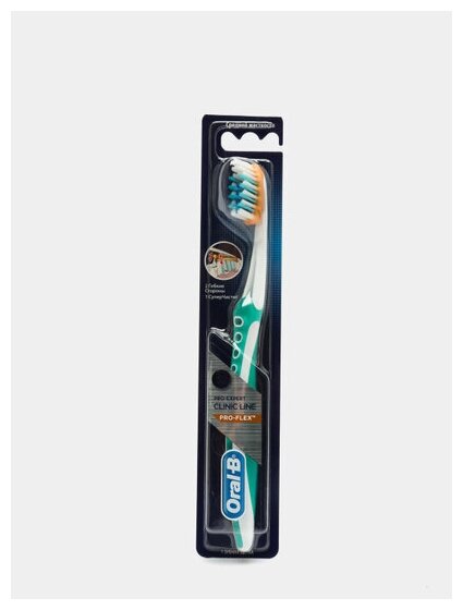 Зубная щетка Oral-B ProExpert CLINIC LINE PRO-FLEX, средняя. Особенности: • Заостренная поверхность щетины прочищает труднодоступные места, внутреннюю поверхность и области изгибов протеза. • Oral-B - марка зубных щеток, которой пользуются многие стоматологи в мире. Головка щетки имеет гибкие стороны, которые подстраиваются под особенности вашей линии десен и поверхности зубов для суперчистки. Благодаря своей гибкости также бережно относится к деснам.Удаляет до 90% налета в труднодоступных местах. • Щетинки "CrissCross", расположенные под углом друг другу, "поднимают" и "выметают" налет. С поверхностью для чистки языка и щек. • Зубная щетка не предназначена для детей младше 6 лет. Рекомендуется менять щетку каждые 3 месяца. Глубоко проникает в межзубные промежутки, разрушая, приподнимая и удаляя бактериальный налет - Удаляет до 94% налета в межзубных промежутках - Снижает уровень кровоточивости десен на 26%. - Гибкие стороны Pro-Flex с щетинками Criss Cross® адаптируются к индивидуальному строению полости рта и эффективно удаляют налет, обеспечивая превосходный уровень чистки, не травмируя ткани зубов и десен - Щетинки Criss Cross® расположенные под углом 25° эффективно удаляют зубной налет - Мягкие закругленные щетинки позволяют избежать травмирования тканей зубов и десен Арт. 07232.