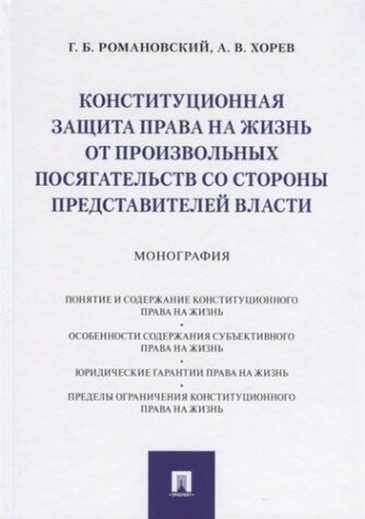 Конституционная защита права на жизнь от произвольных посягательств со стороны представителей власти (Романовский Георгий Борисович; Хорев Александр Владимирович); Проспект, 2019