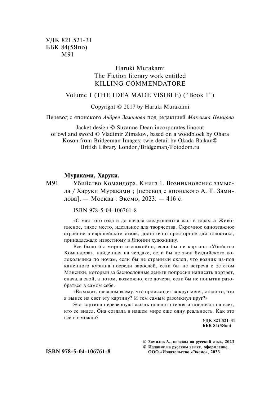 Убийство Командора. Книга 1. Возникновение замысла (Мураками Харуки); ООО "Издательство "Эксмо", 2020