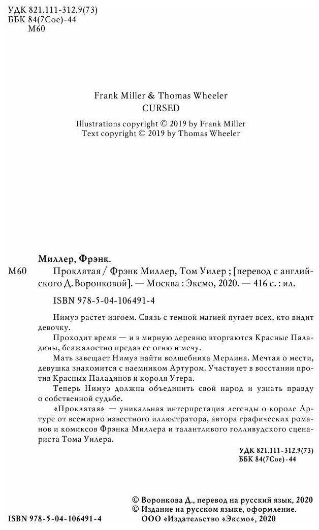 Книга: Проклятая (Фрэнк Миллер, Том Уилер); Эксмо, Редакция 1, 2019