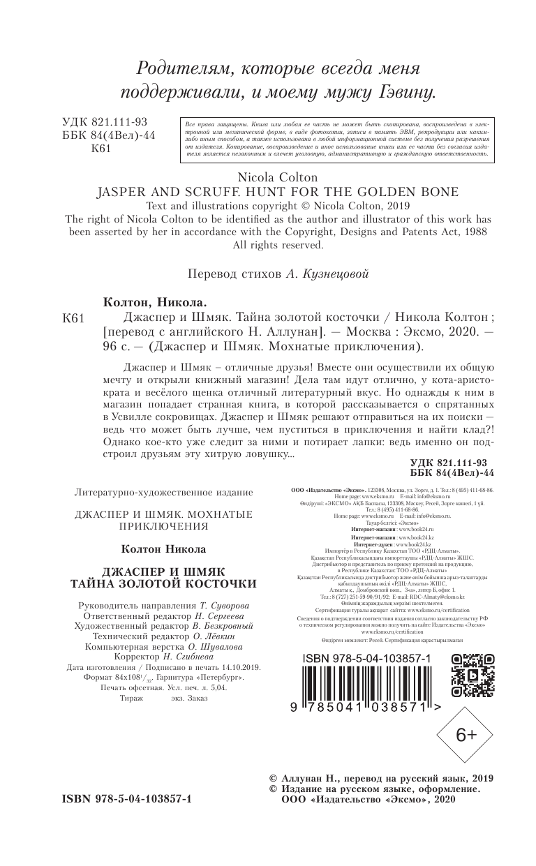 Джаспер и Шмяк. Тайна золотой косточки (#2) (Колтон Никола); ООО "Издательство "Эксмо", 2019