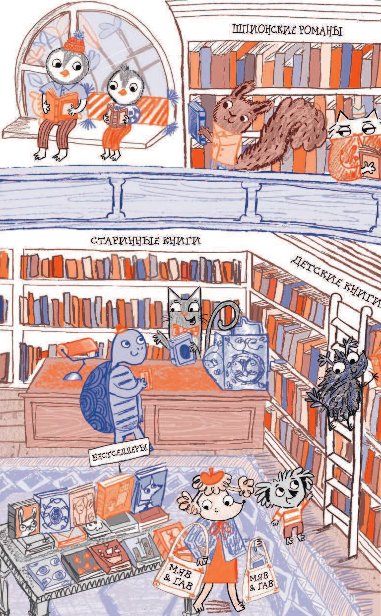 Не особо. Картинки есть, стиль точно как на обложке. Сюжет для ребёнка ещё куда ни шло, но логика местами хромает на обе ноги. Шебутной пёс, который вроде как и говорить не умеет, и правильный кот разыскивают сокровище - золотую косточку, которую нагло присвоила себе местная банда гламурной кисы. В непонятках - почему, например, книжный магазин друзей удалось на ровном месте захватить бандитам, а хозяев выгнать, зачем было устраивать приём на яхте и заманивать туда эту самую банду. Брали в библиотеке, со скрипом дочитала ребёнку, повторить чтение не просили (история не зацепила), чему я очень рада. В общем, приключения ради приключений, без особой морали в подтексте, с шаблонными персонажами, хромой логикой и прочее в том же духе. Уж лучше книжки Ричарда Скарри на тот же возраст, там хоть тоже местами абсурд, но пользы несоизмеримо больше.